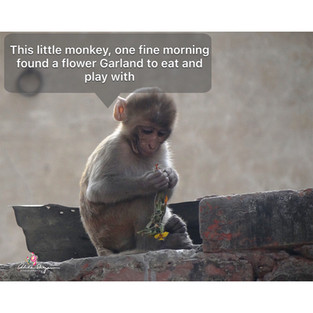 These are a series of six pictures, showing two monkeys fighting over an abandoned garland, in the premises of a mandir at Vrindavan Dham in India.